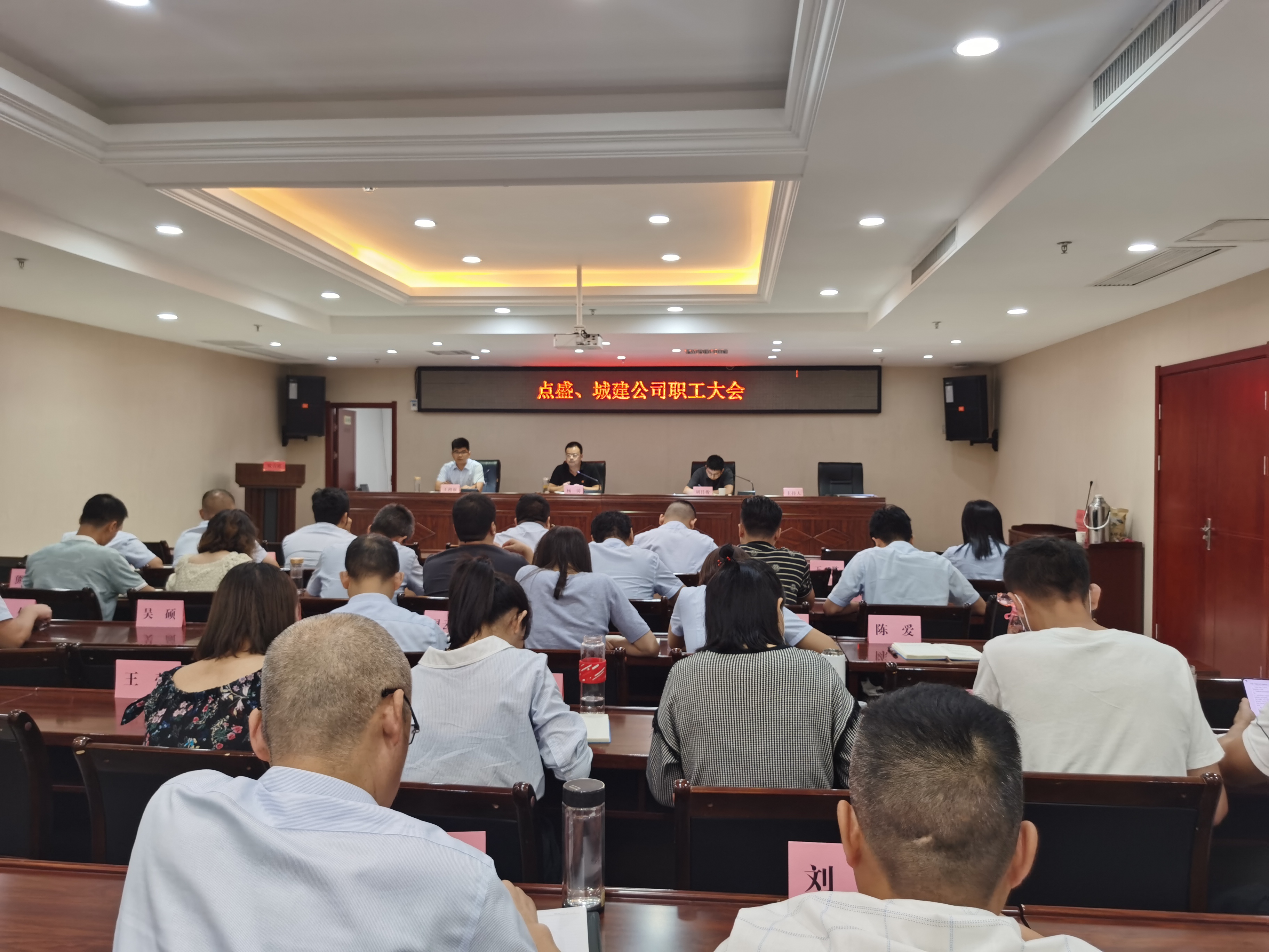 (通訊員胡瑞文、陳愛) 9月26日,點盛、城建公司召開職工大會, 董事長楊濤、副總經理胡昌俊、王楷強出席會議,全體職工參加。 會上,點盛...