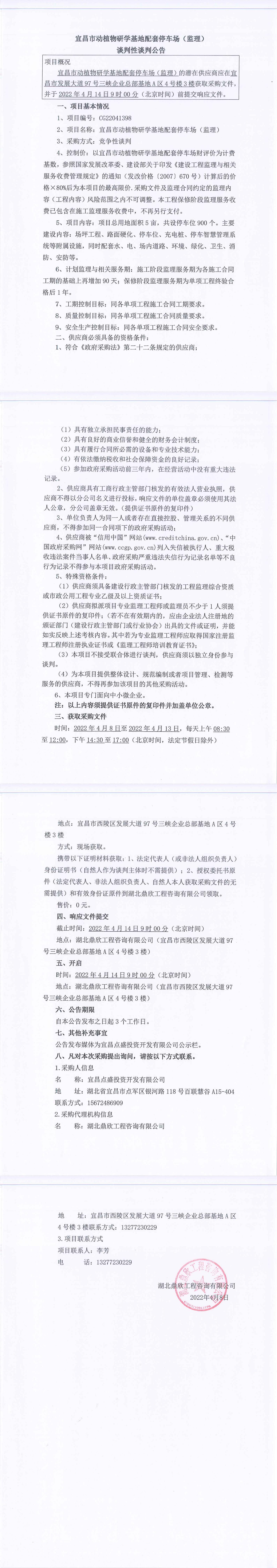 宜昌市動植物研學(xué)基地配套停車場監(jiān)理談判公告