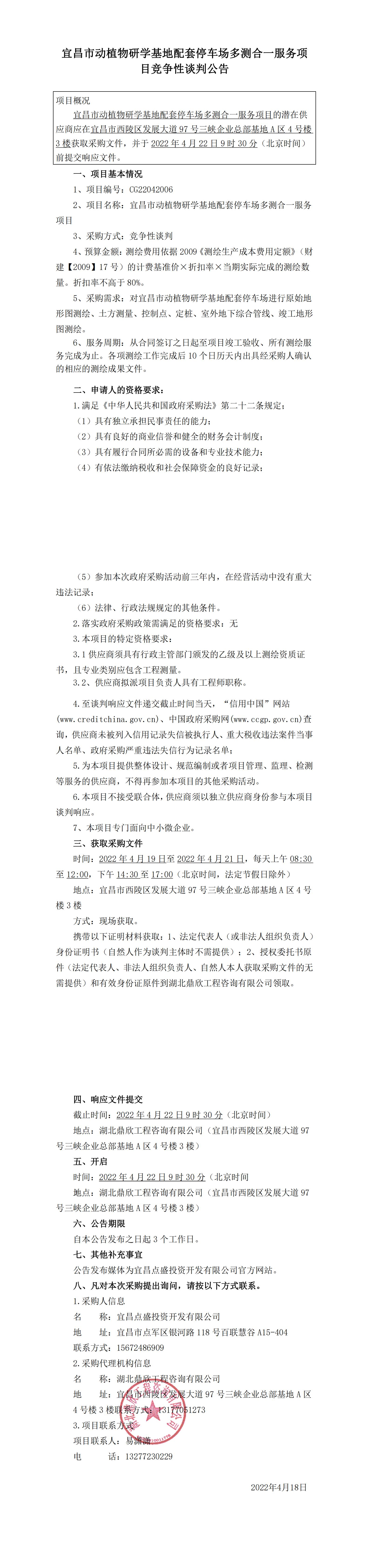 宜昌市動植物研學基地配套停車場多測合一服務項目競爭性談判公告