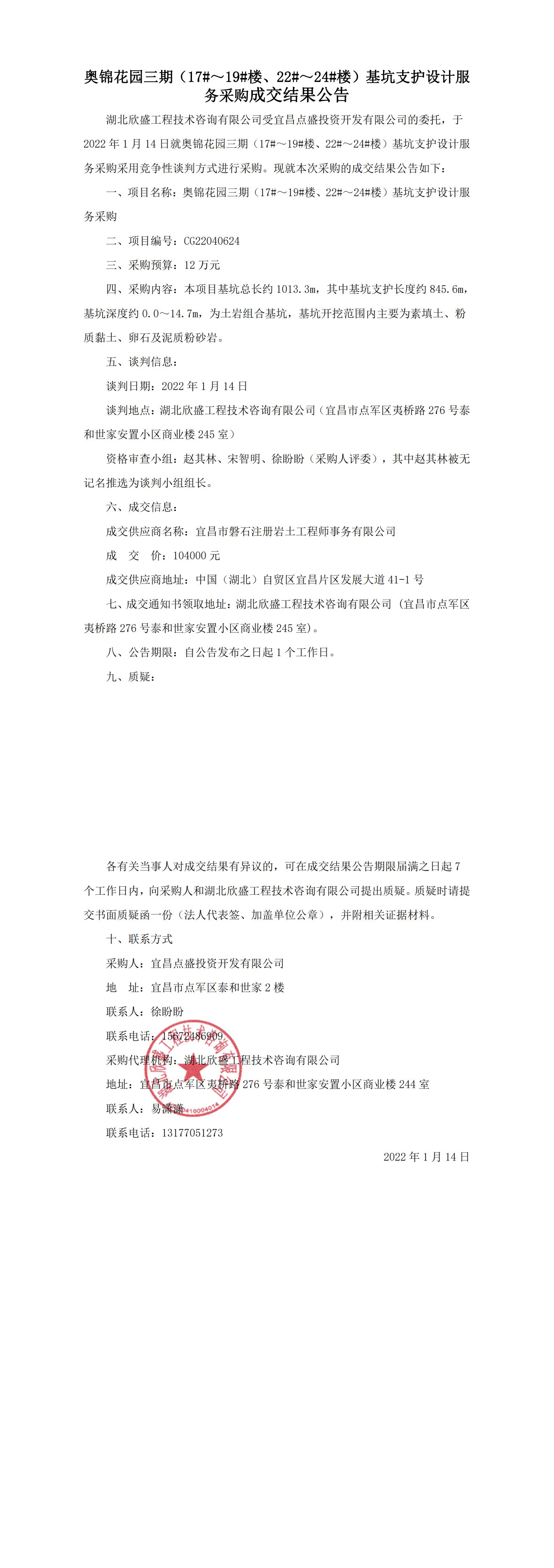 奧錦花園三期(17#~19#樓、22#~24#樓)基坑支護設計服務采購成交結果公告
