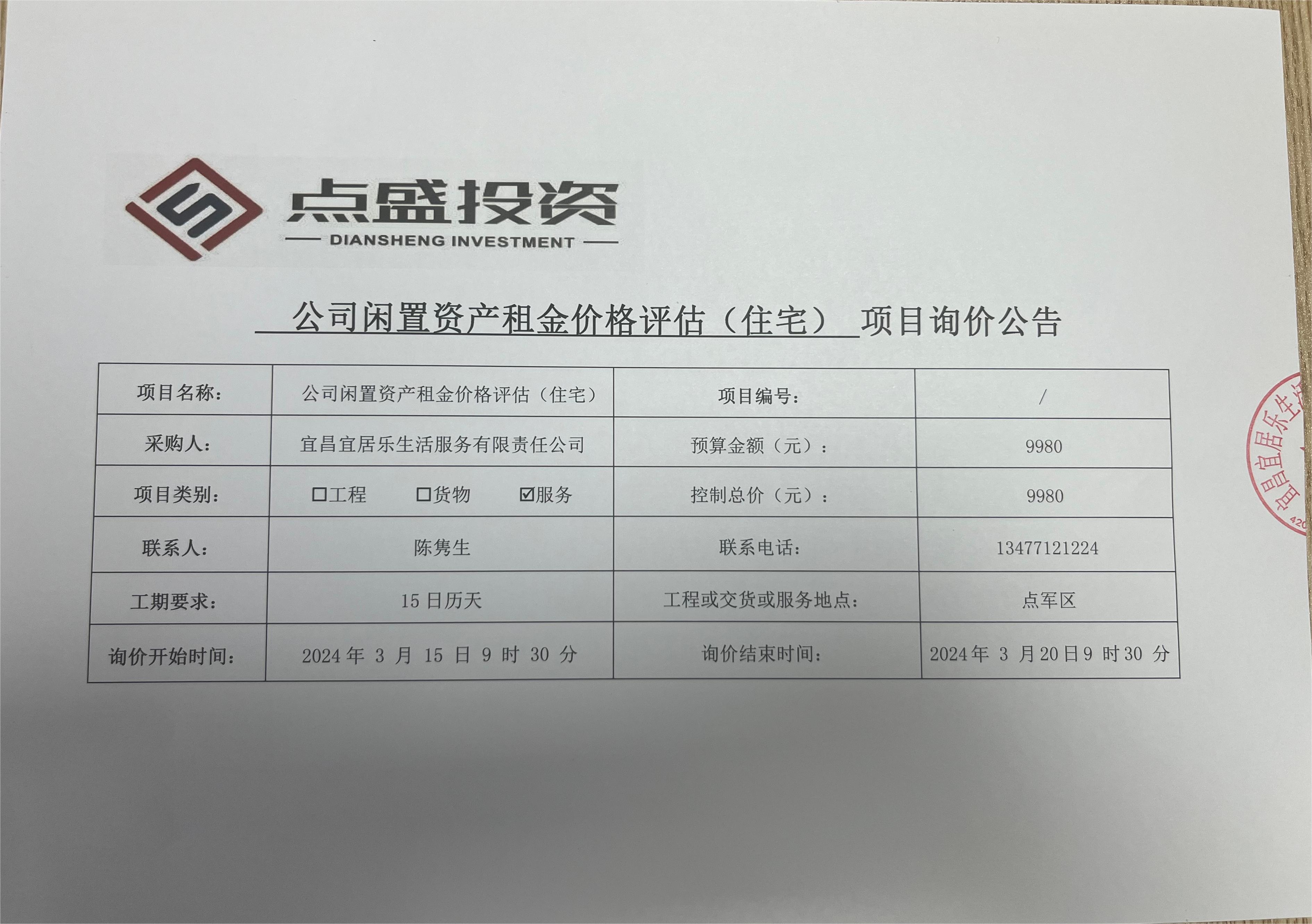 公司閑置資產(chǎn)租金價格評估(住宅)?項(xiàng)目詢價公告
