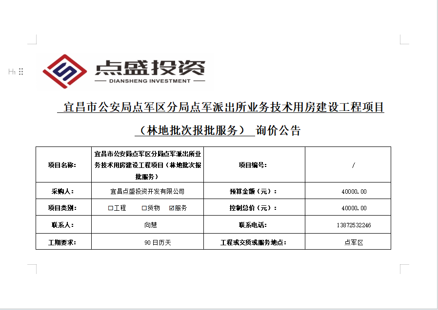宜昌市公安局點軍區分局點軍派出所業務技術用房建設工程項目 (林地批次報批服務) 詢價公告
