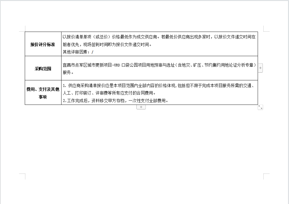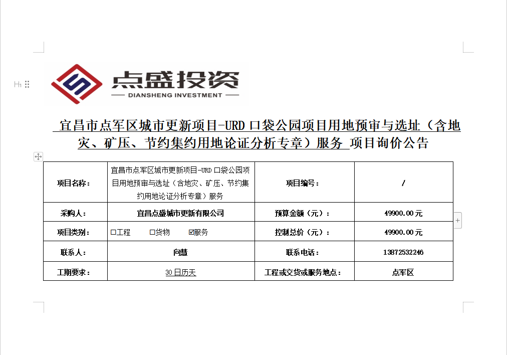 宜昌市點軍區城市更新項目-URD口袋公園項目用地預審與選址(含地災、礦壓、節約集約用地論證分析專章)服務詢價公告