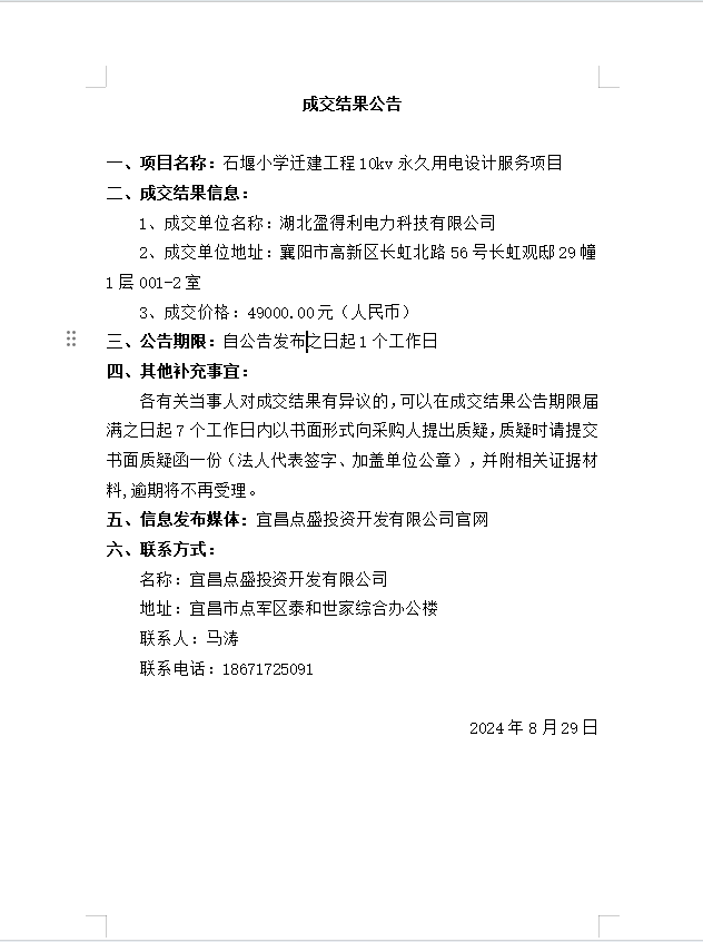 石堰小學(xué)遷建工程10kv永久用電設(shè)計(jì)服務(wù)項(xiàng)目成交公告