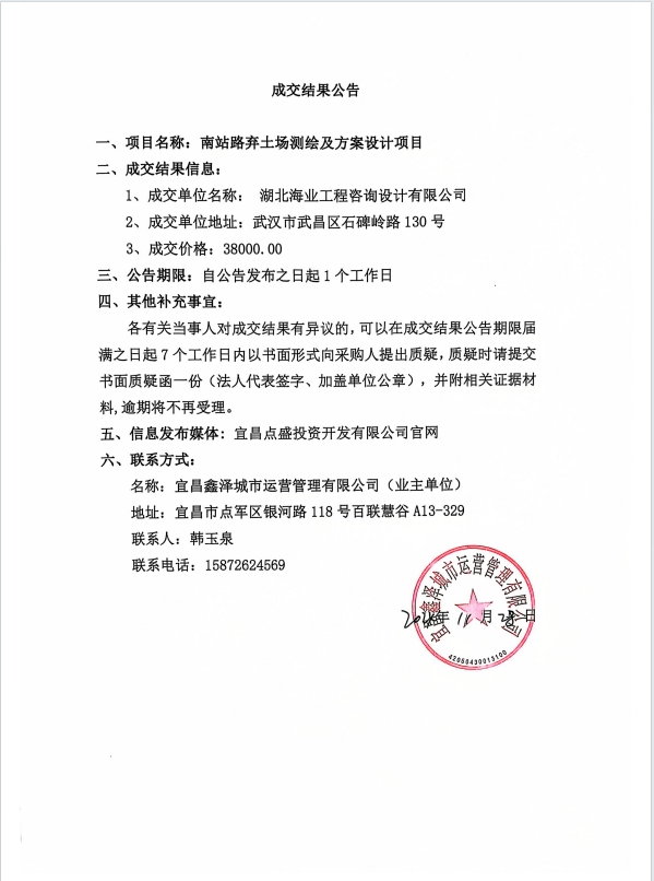 南站路棄土場測繪及方案設計項目成交公告