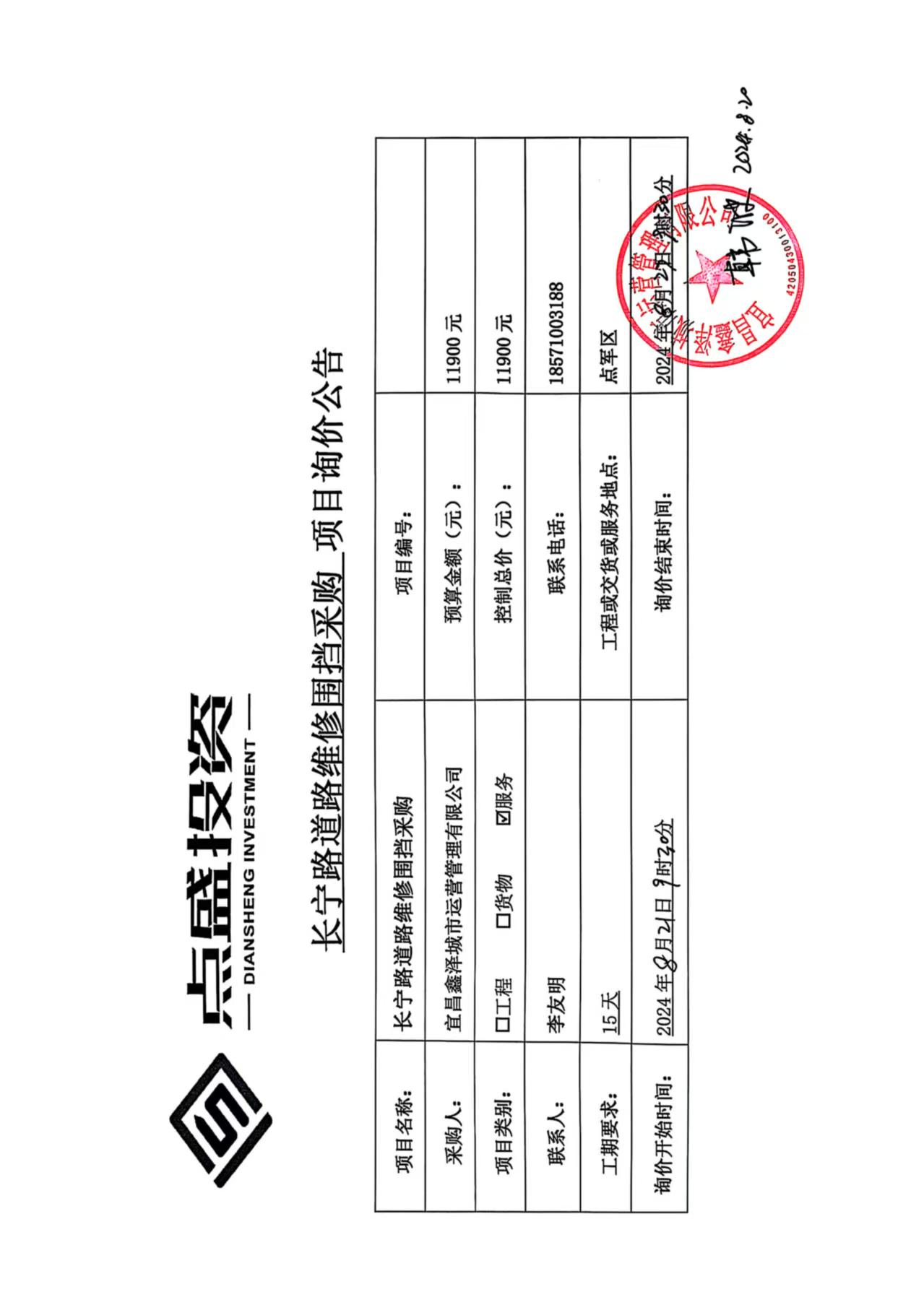 長寧路道路維修圍擋采購詢價(jià)公告