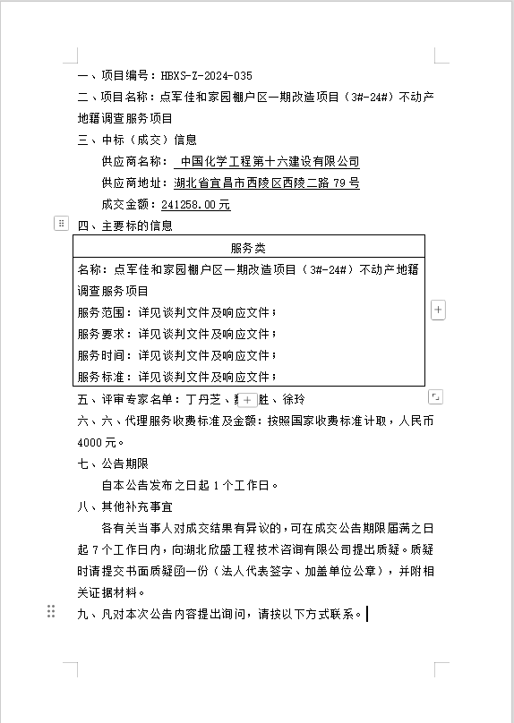 點軍佳和家園棚戶區一期改造項目(3#-24#)不動產地籍調查服務項目成交公告